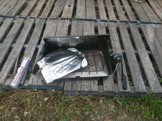 And so, dinner was cooked on the porch. Don’t laugh. I didn’t want to run the risk of ruining my plastic table. πŸ™‚