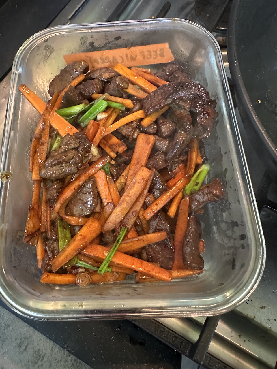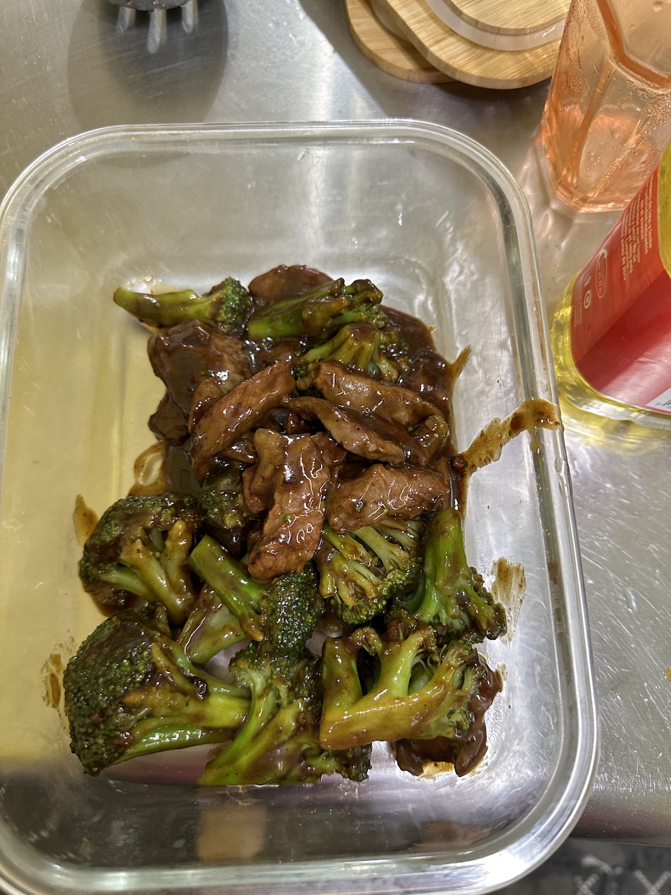 Beef and broccoli is always delicious. Oyster sauce is magic.