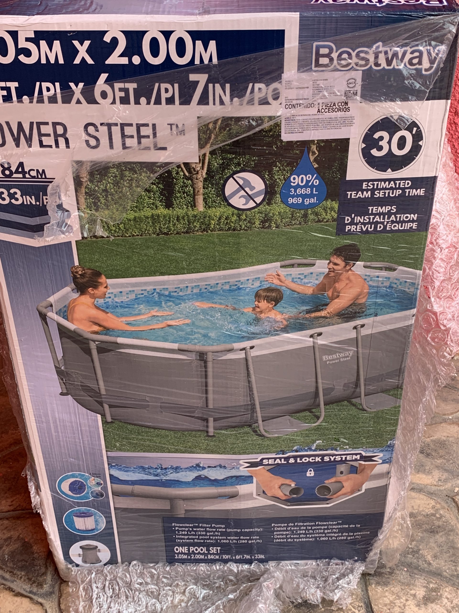 And then, I saw an ad on one of my social media feeds. Soriana was announcing a smaller version of the large pool I’d been eyeing! At 2×3 metres and 85cm tall, it would be little more than a glorified chlorinated bathtub, but it would fit perfectly on my rear patio, the ideal location as it has shade, is private, and I can keep Bonita out of it. The smaller footprint also promised less upkeep and cost to maintain.