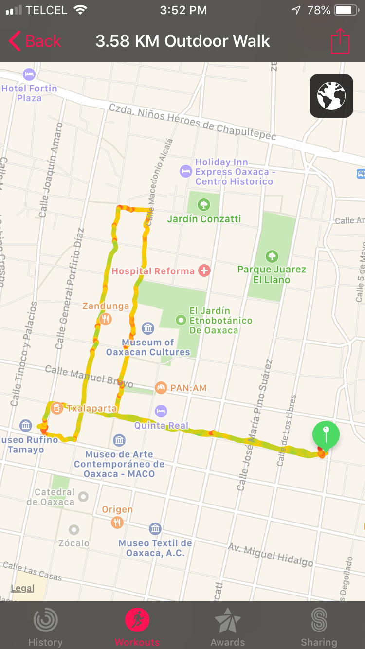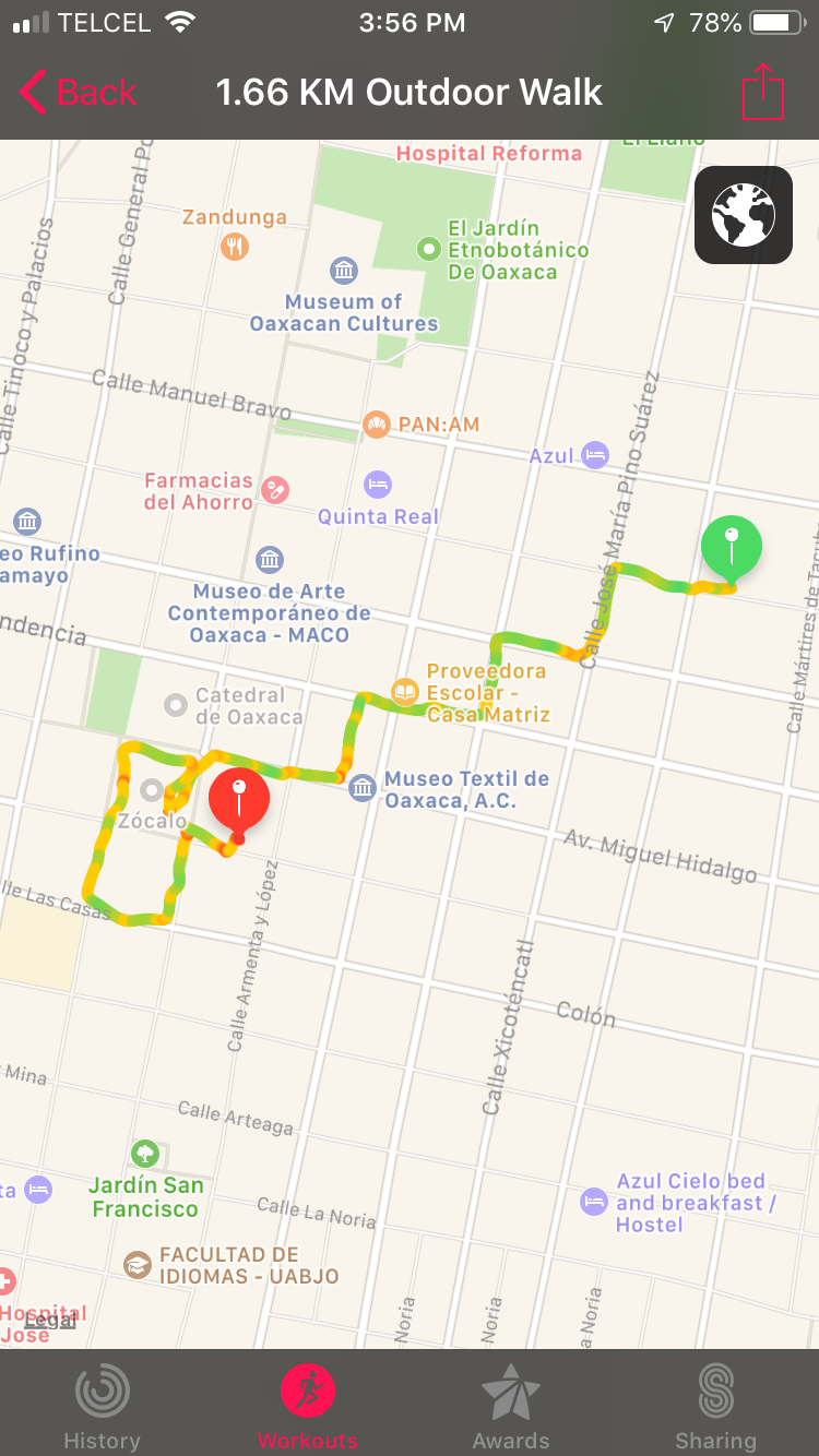 I walked over 11KM my first day in Oaxaca, but unfortunately, I did not sleep well my first night, a combination of a horrible typical Mexican mattress and my not having slept in a bed in a full year. The awful bed was a shame because, otherwise, the room was quite dark and quiet.