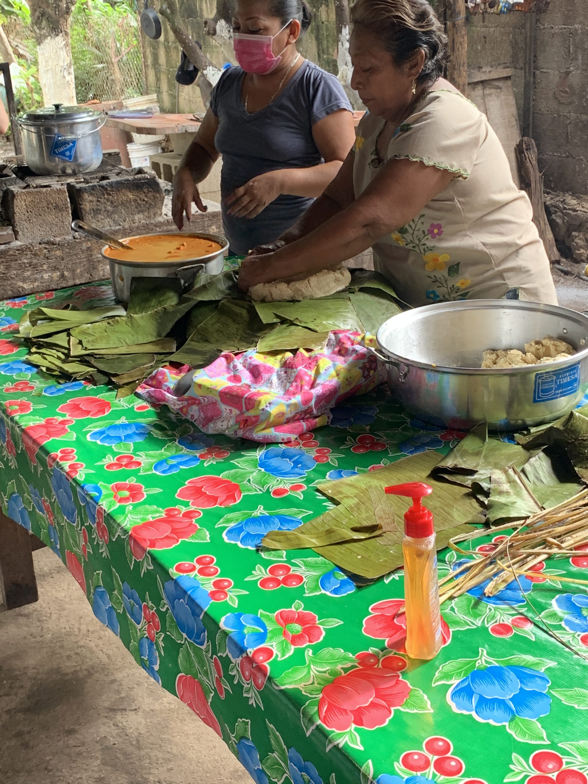 Our host family was up all night preparing “pibs” for themselves and us. The full name is mucbipollo or sometimes pibipollo, hence “pib.” It is a hearty stew cooked inside masa in an underground “oven,” similar to a tamal.