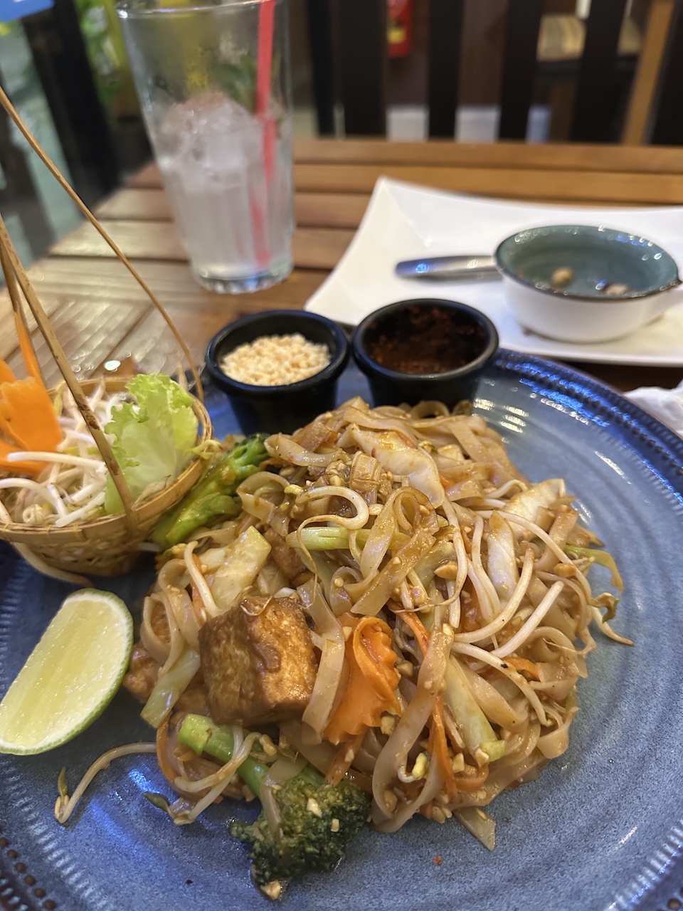 I thought of going to Romeo’s for dinner, but I’d spotted Bangkok Thai Restaurant in my wanderings, so its call was irresistible. I ordered a limonada and a tofu pad thai (no egg). It was excellent, better than any you’d find in Mérida.