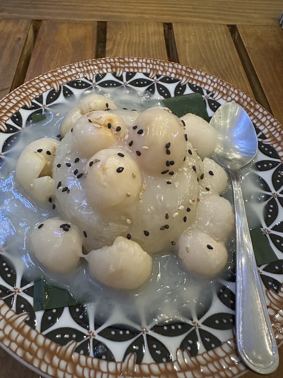 I haven’t had good mango sticky rice in Mérida — the coconut milk here is always sour, so restaurants must be sourcing their cans from the same supermarkets I was until I gave up and starting making my own from powder. So when I saw the dessert on the menu, I was confident I’d finally get a chance to see what the dessert is supposed to taste like. Slight hiccup, they didn’t have mango! But as a substitute, they offered lychee. I’m pretty sure I’ve never had lychee before, so I said that would do. YUM. I loved everything about this, from the texture of the rice to the nutty sesame seeds to the (almost too sweet) coconut sauce to the delicately flavoured lychee that were not slimy.