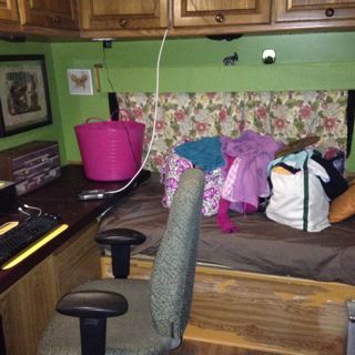 The back bed is loaded with more bags that need to go out of the truck and my laundry basket, sitting on the desk, is coming, too.