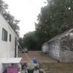We took a break after that and I went in to call SaskPower. The power line to my neighbour’s house cuts across my property and is very close to the roof of the cabin. It is not installed according to code and I put in a request to have the line moved. We absolutely cannot put the new roof on the cabin until that happens. I really hope we can get this done by the time C&C return from their holiday. Before the new pole went in yesterday, the line was high enough up that we could have avoided it, but now it’s even lower and Charles said there is no way he’s getting up there the way it is now. We shall see what SaskPower says…