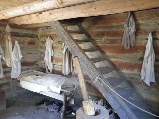 - Slave quarters. There could be 12 people crammed into a tiny cabin with a dirt floor. The top floor was used for storage.