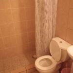 - The only funky thing about the bathroom is this corner with the water heater. The room would look much better if they curtained that off.