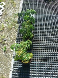 My outdoor shower lines up with the end of the porch, so the plants are in perfect position for watering. I was told to keep them nice and wet, so not having to deal with watering cans and whatnot will make it so much easier to get into the habit of keeping Larry, Curly, and Moe happy.