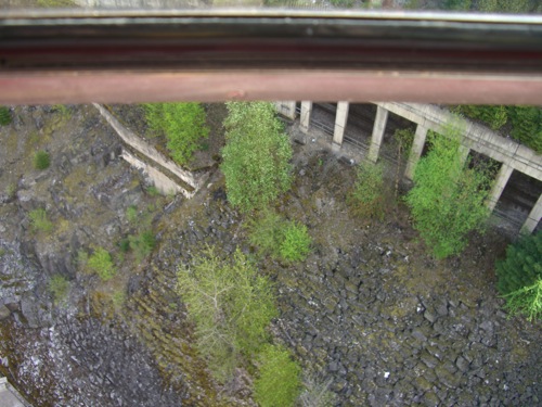 Today, Hell’s gate is a tourist trap, with an airtram that crosses the river to a souvenir shop on the other side. It is possible to hike down and cross the river on a bridge and then return on the tram at a reduced price. I intended to hike down and back, having sworn to never ride on an airtram again, but May 3rd was ‘customer appreciation day’ and the tram was free! The ride down and then back up wasn’t as bad as that on Sulphur Mountain, but almost. 🙂